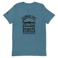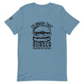 "I'd Smash That Burger... pass me my spatula" t-shirt design with burger. The Flat Top King logo on one sleeve.